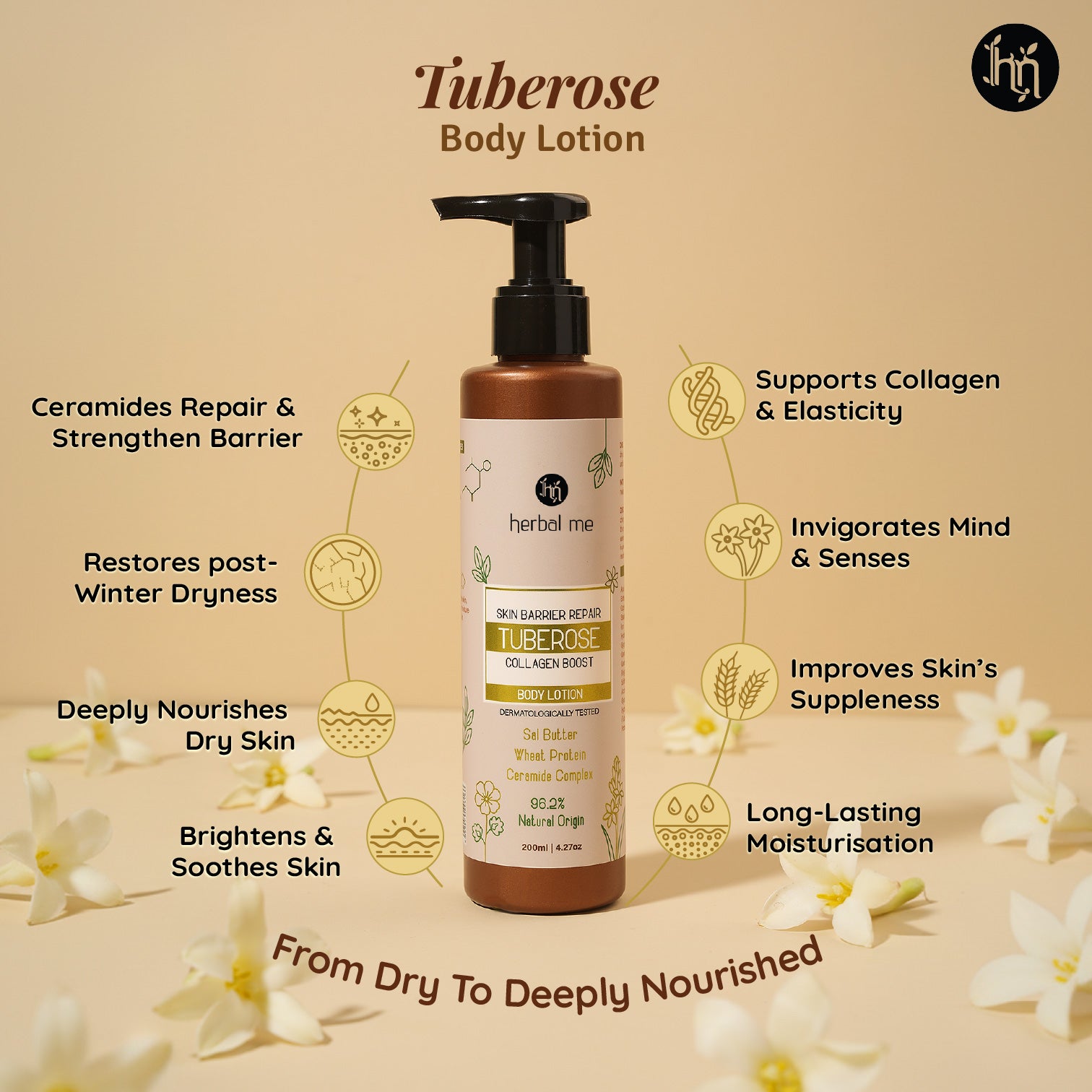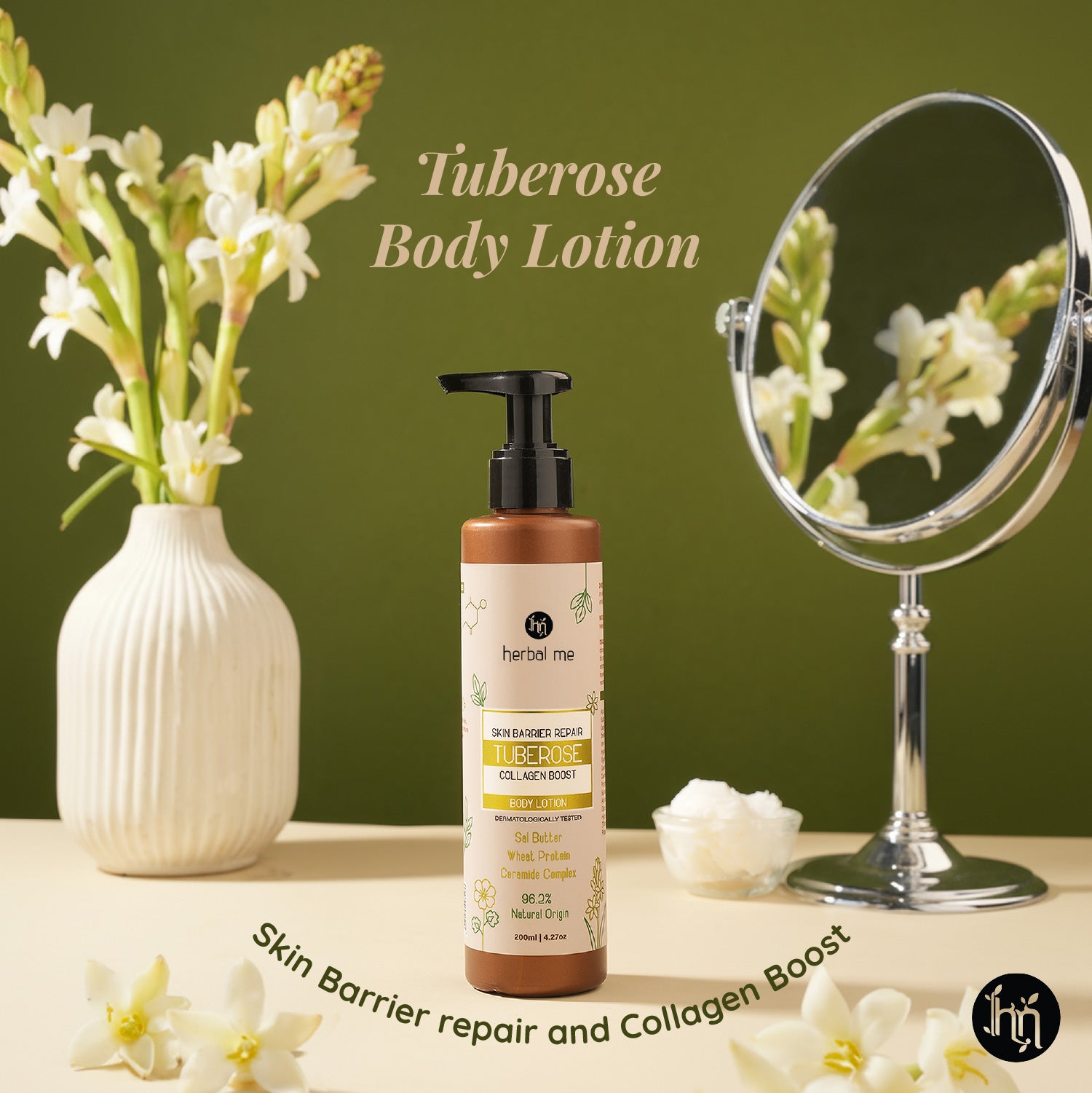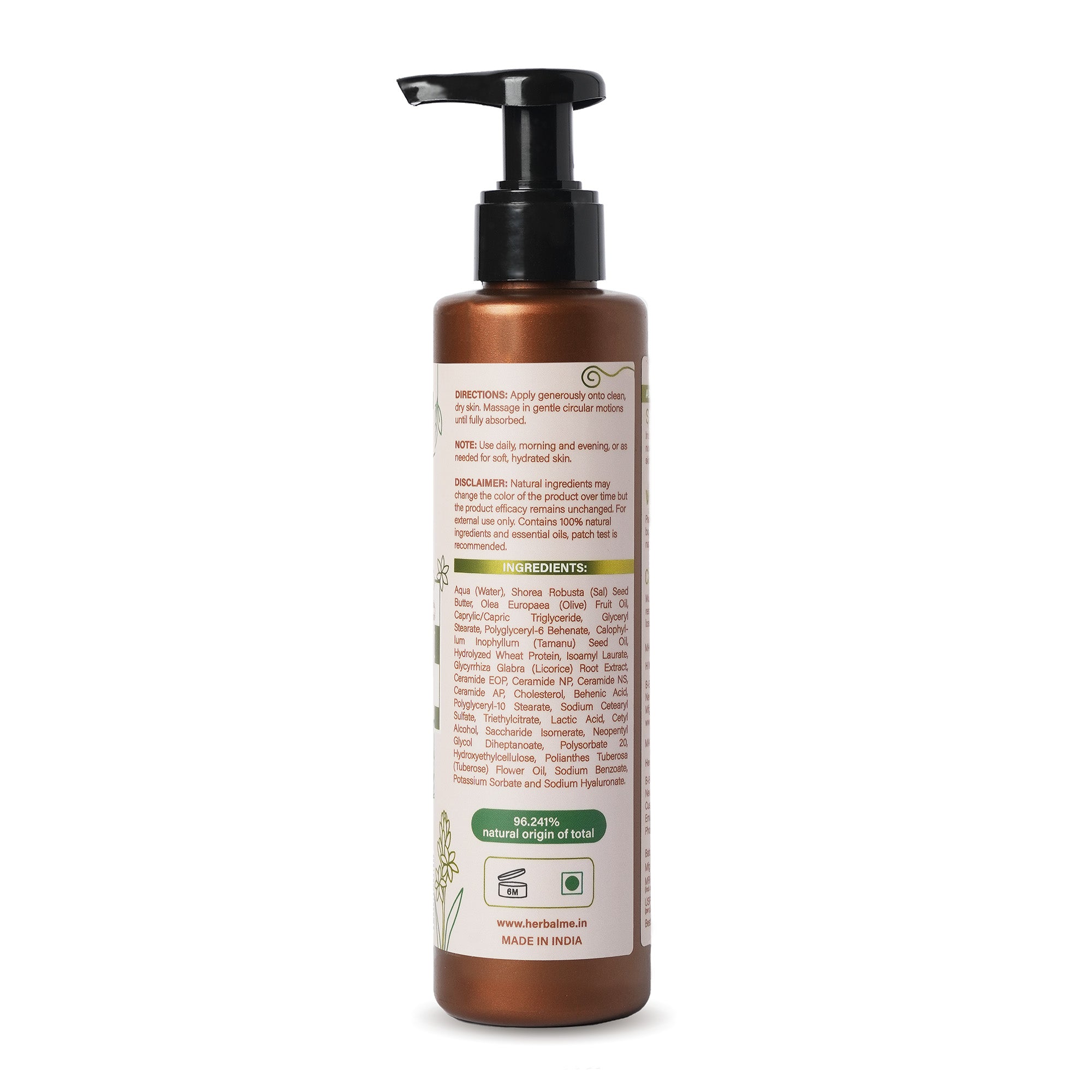 A skin-barrier-repairing body lotion powered by Ceramides and Indian Sal Butter, created to restore moisture, strengthen the skin barrier, and defend skin against dryness, pollution, and everyday stress. Naturally scented with pure Tuberose essential oil, this balanced formula nourishes deeply without heaviness, making it ideal for daily use in our challenging climates.